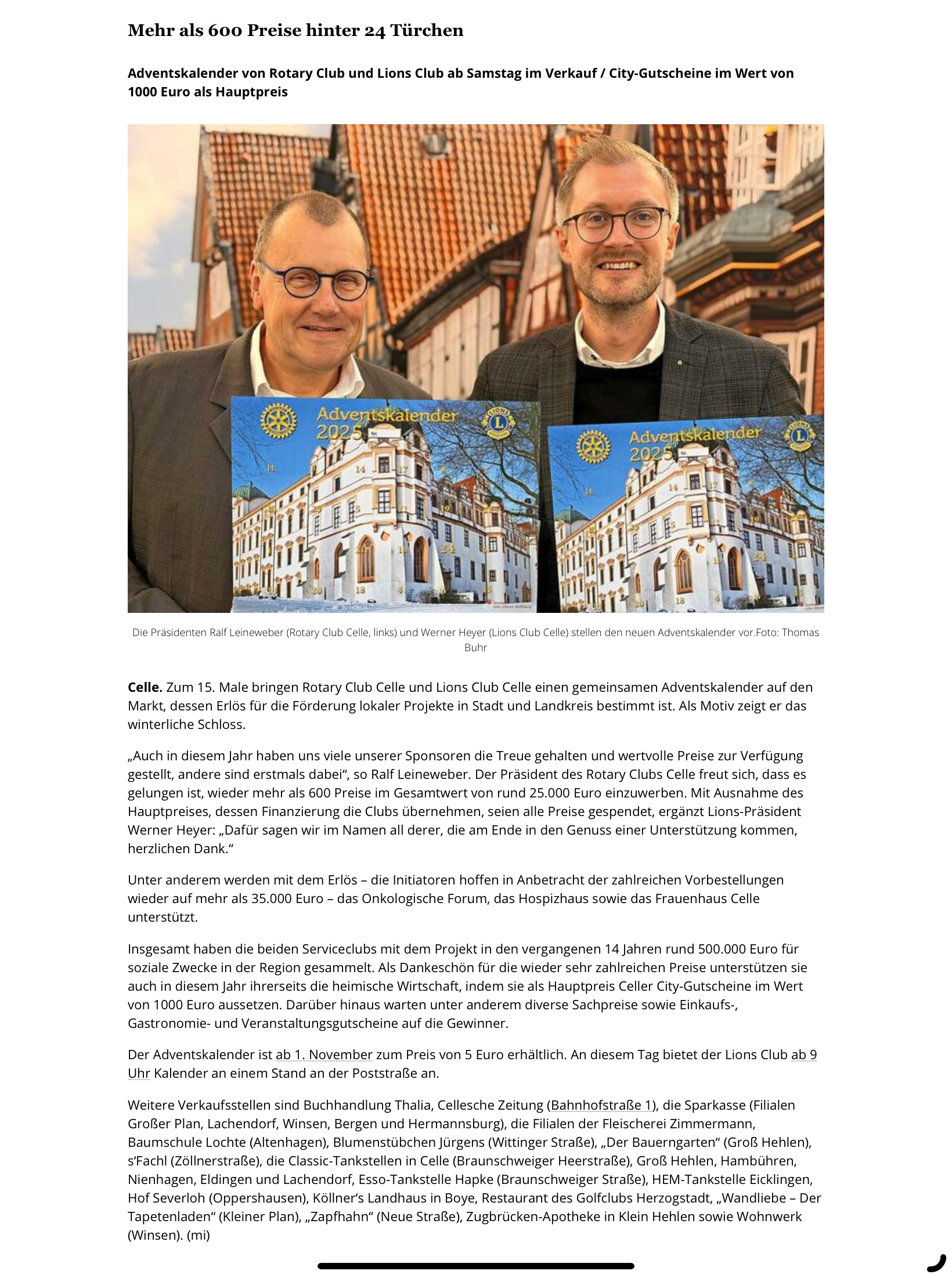 Mit freundlicher Genehmigung der Celleschen Zeitung | Cellesche Zeitung vom 30. Oktober 2025, Foto: Thomas Buhr